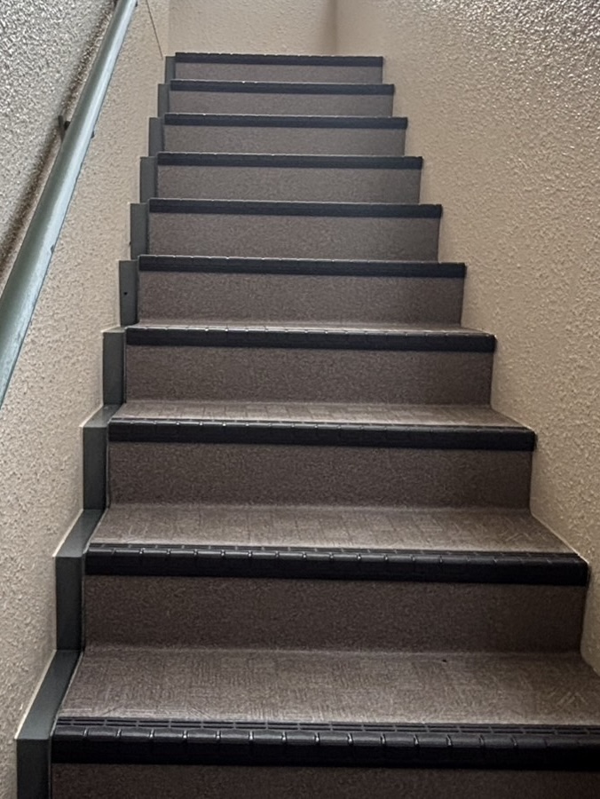 アパートのコンクリート階段に長尺シート工事を致しました。
